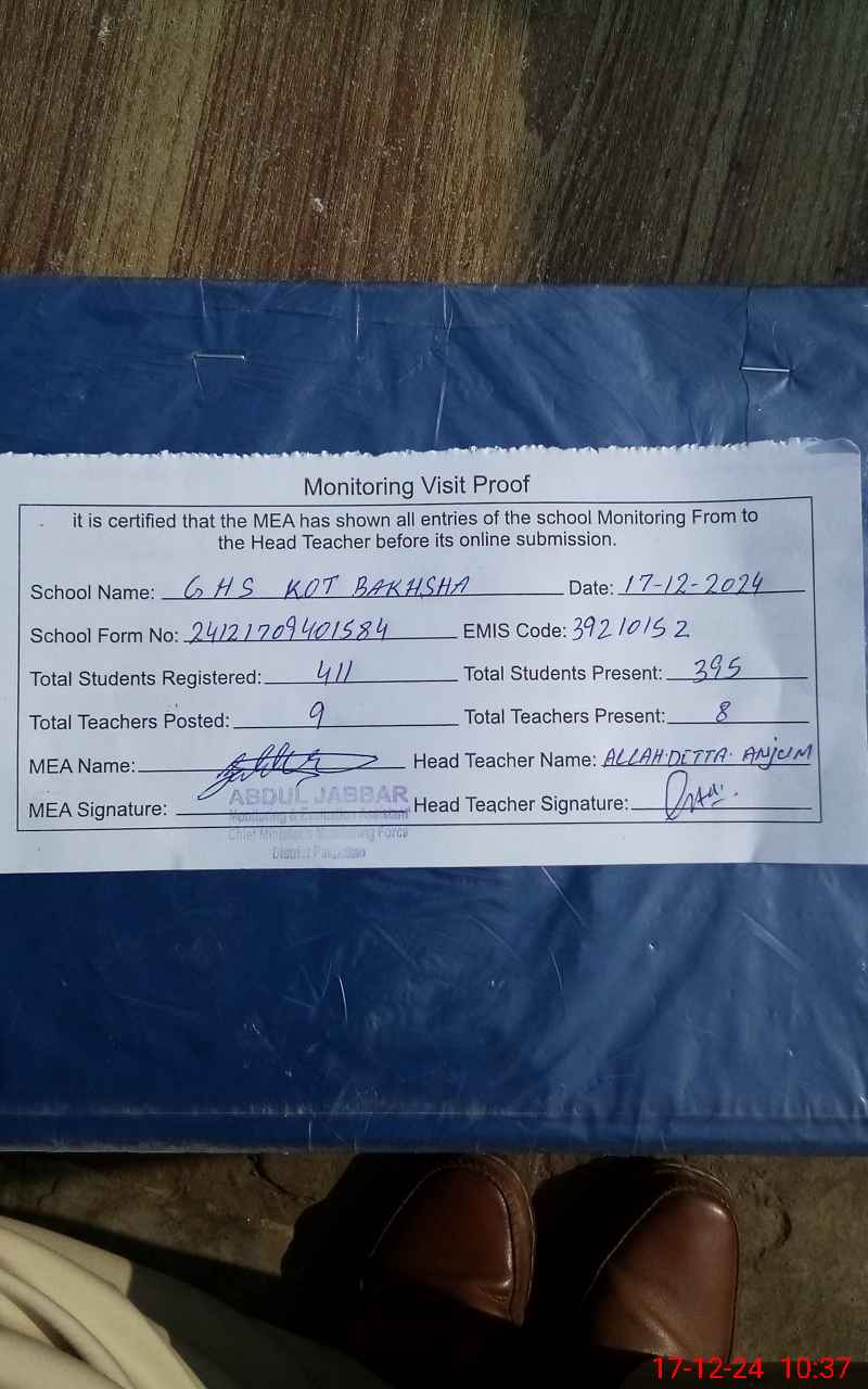 | EMIS Code: 39210152 | Name of School: GHS KOT BAKHSHA | |||