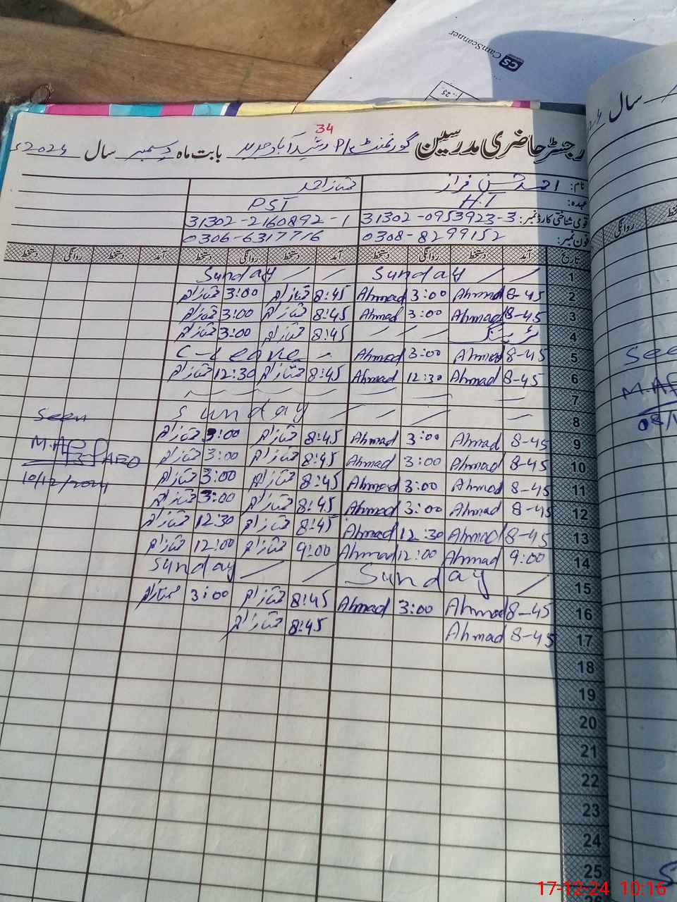 | Name: AH**** HA**** FA**** Designation: (School Headmaster's/Headmistress's) PST Phone/Cell Number: 03**** |