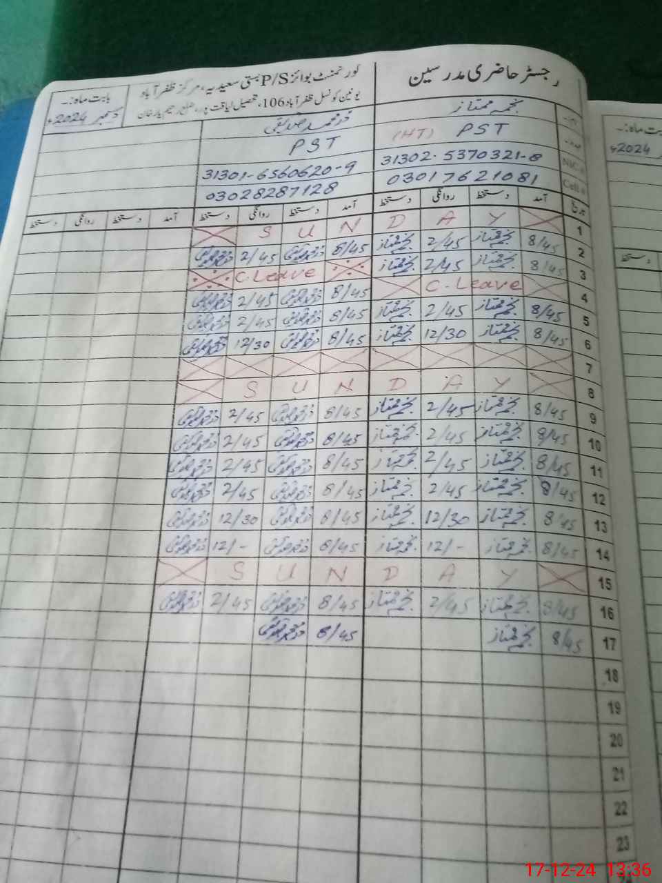 | Name: DU**** MU**** Designation: (School Headmaster's/Headmistress's) PST Phone/Cell Number: 03**** |