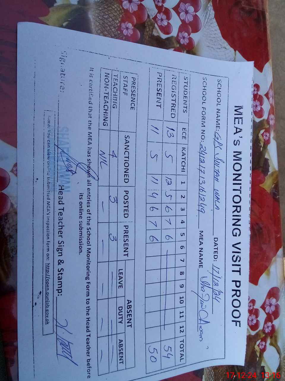 | EMIS Code: 36410159 | Name of School: GPS SULTAN WALA, P/O HAQ NAWAZ WALA, KABIRWALA | |||