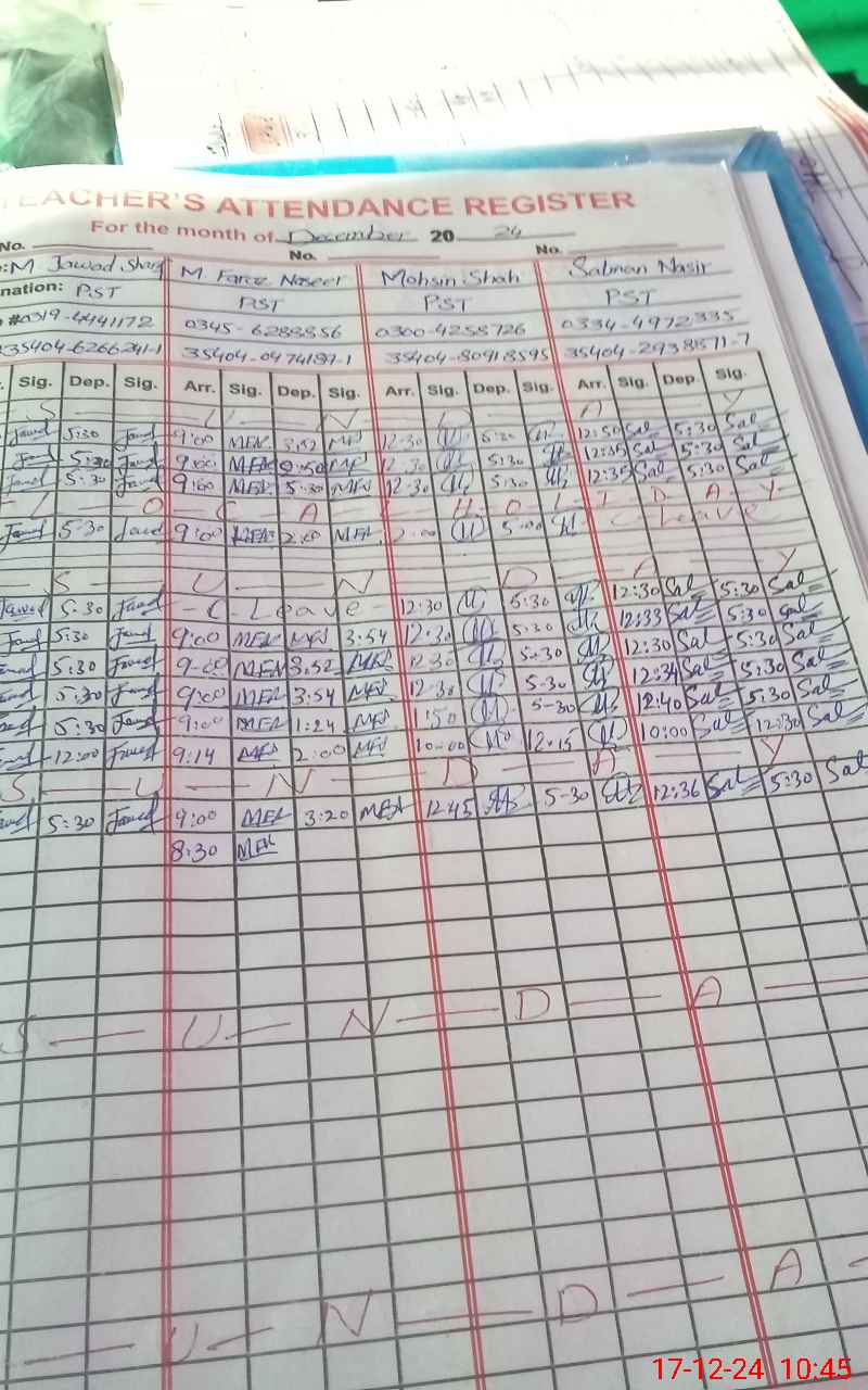 | Name: MU**** FR**** NA**** Designation: (School Headmaster's/Headmistress's) PST Phone/Cell Number: 03**** |