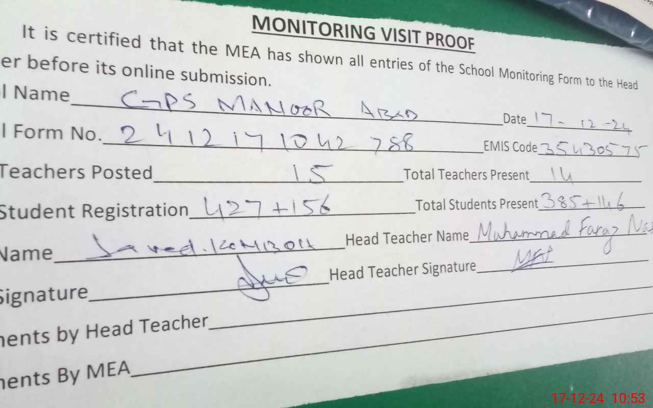 | EMIS Code: 35430575 | Name of School: GPS MANSOOR ABAD | |||