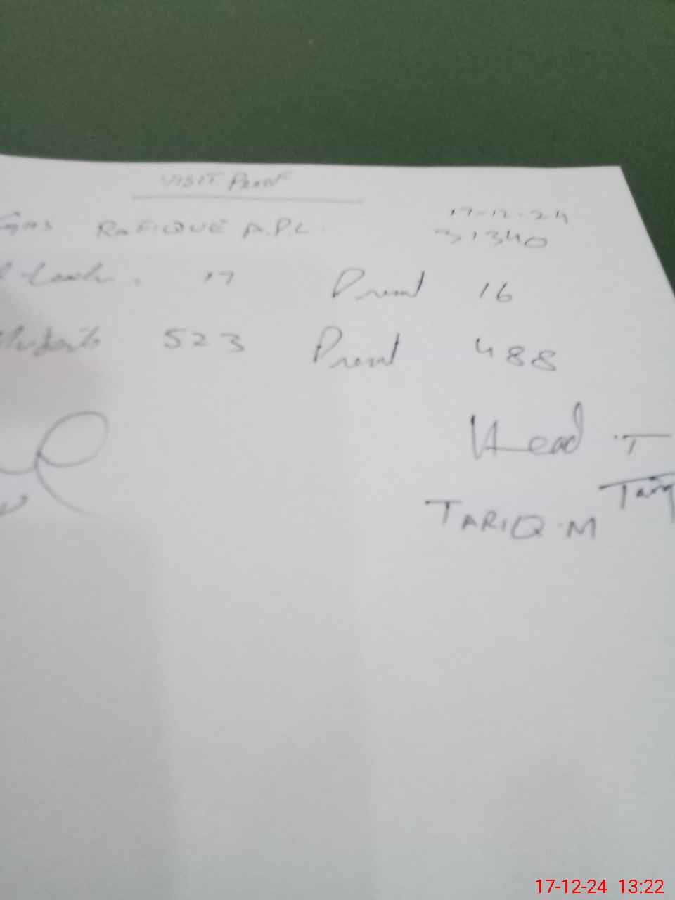 | Monitoring Date: 17-12-2024 | Start Time: 17-12-2024 12:53 PM | End Time: 17-12-2024 01:22 PM | Name of MEA: Ar**** Na**** | |