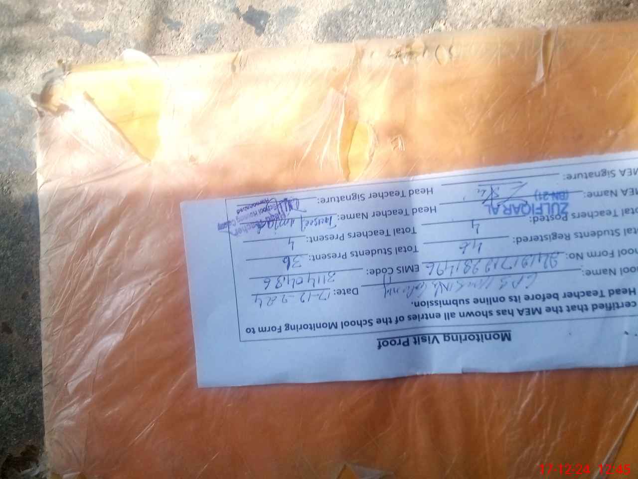 | Attendance Register | Head Teacher | MEA with School | Visit Proof |