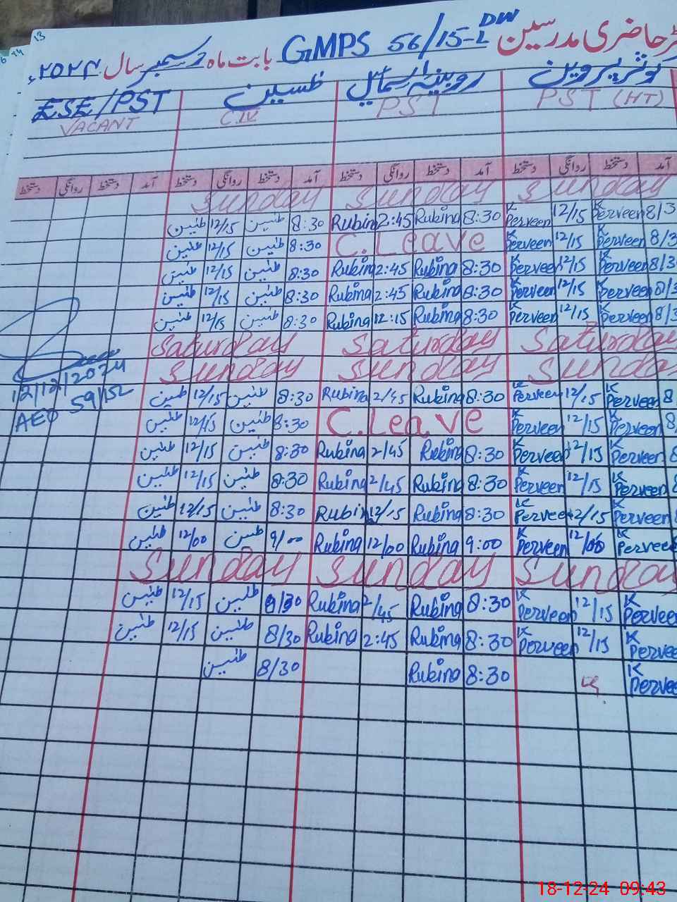 | District: KHANEWAL | Tehsil: MIAN CHANNU | Markaz: 59/15-L - FEMALE | Level: Primary | |