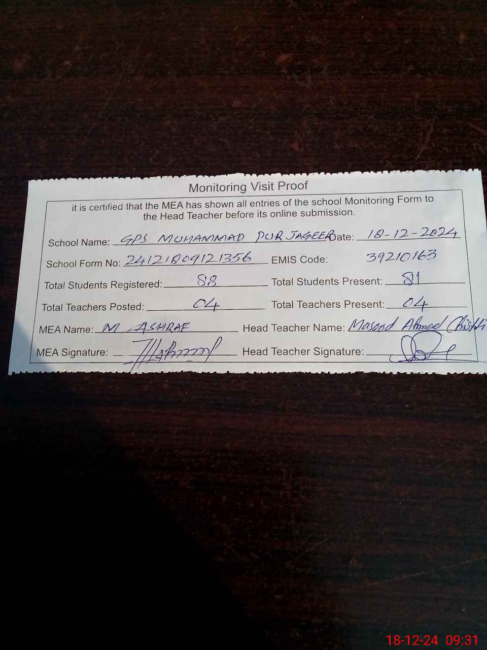 | EMIS Code: 39210163 | Name of School: GPS MUHAMMAD PUR JAGEER PO PAKPATTAN | |||