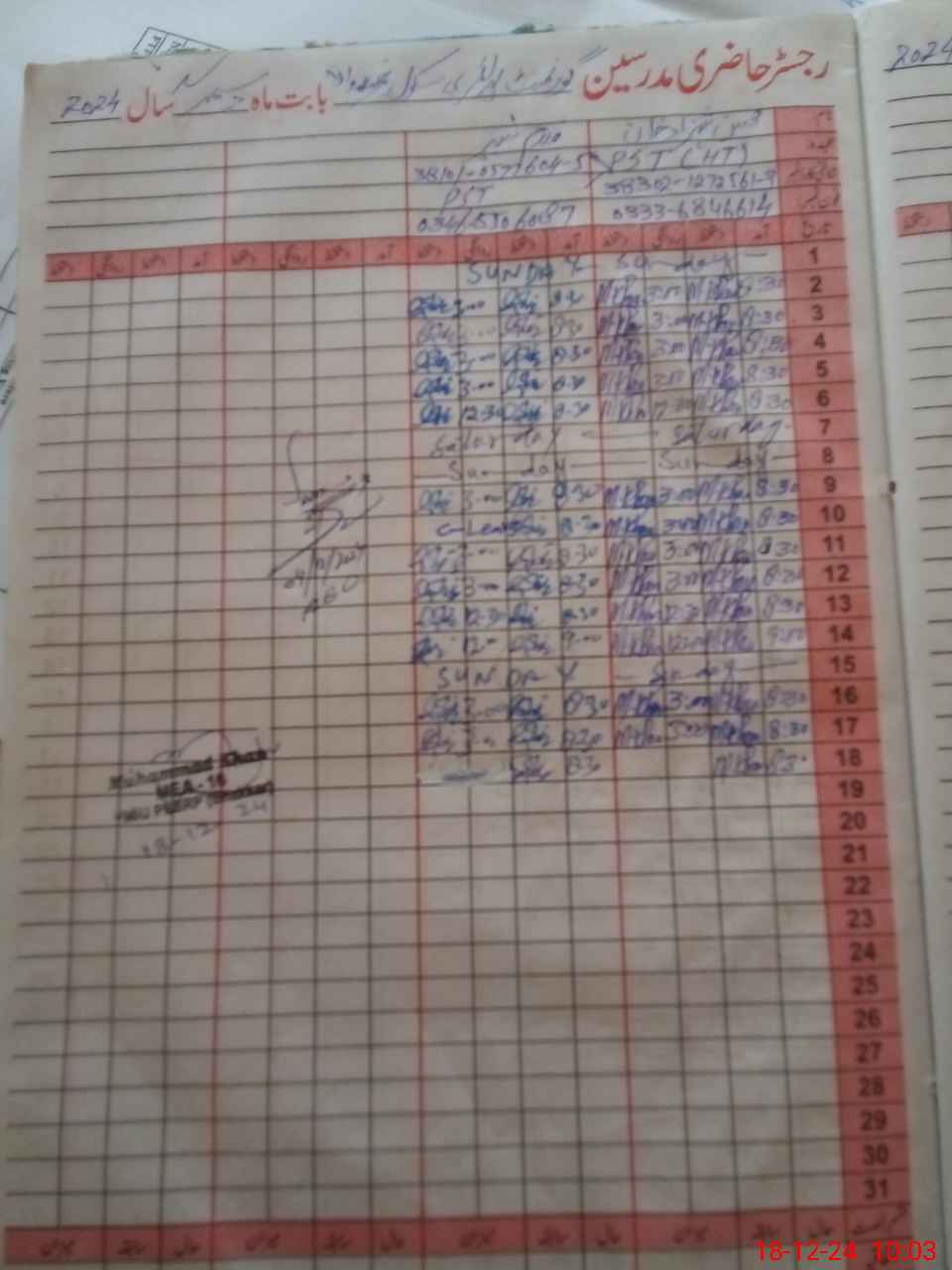 | Name: Qa**** ULHa**** Designation: (School Headmaster's/Headmistress's) PTC/JV Phone/Cell Number: 03**** |