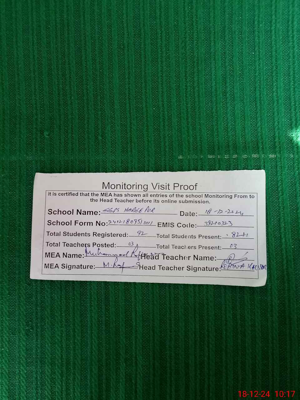 | EMIS Code: 39210323 | Name of School: GGPS HAREE PUR | |||