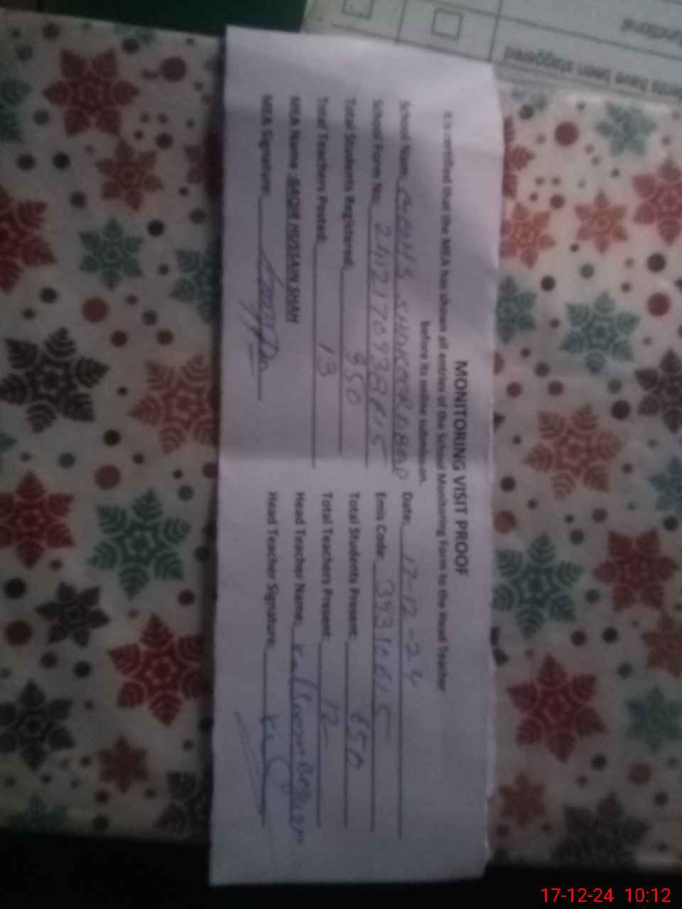 | EMIS Code: 39310614 | Name of School: GGHS SHAKOOR ABAD | |||