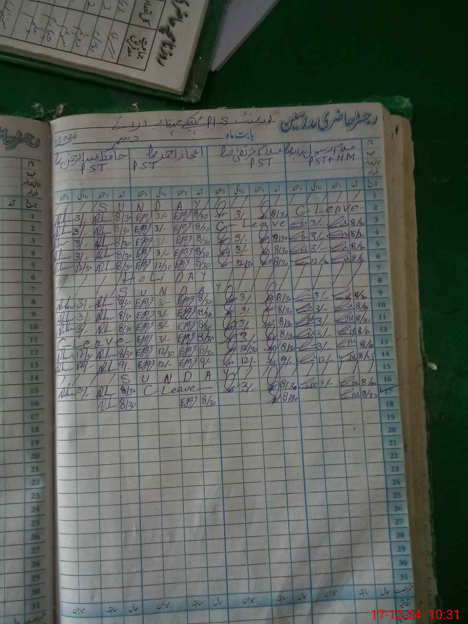 | CNIC | Full Name | Designation | R/C | Absence During Last Calender Month |