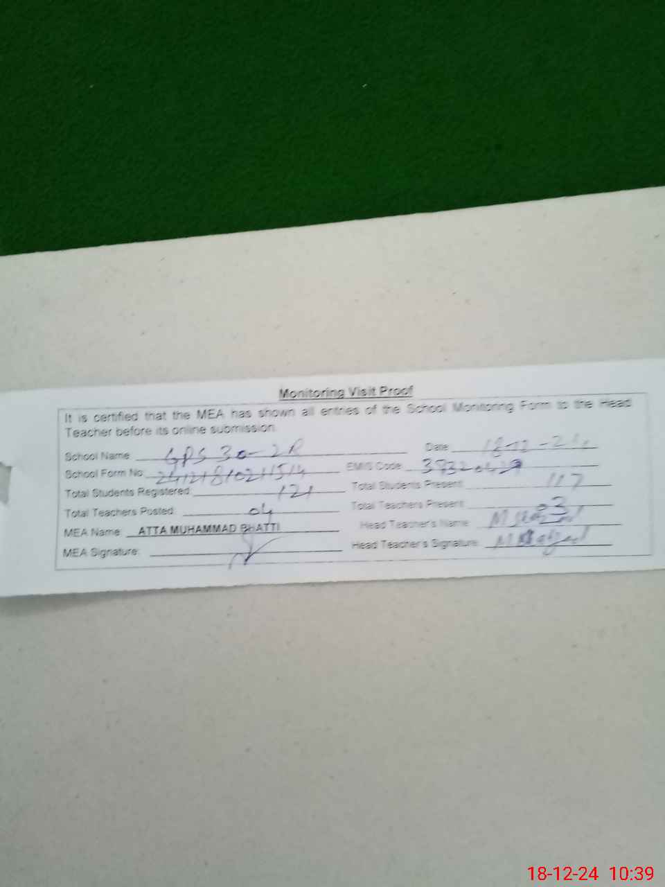 | EMIS Code: 39320429 | Name of School: GPS CHAK NO. 30/2-R | |||