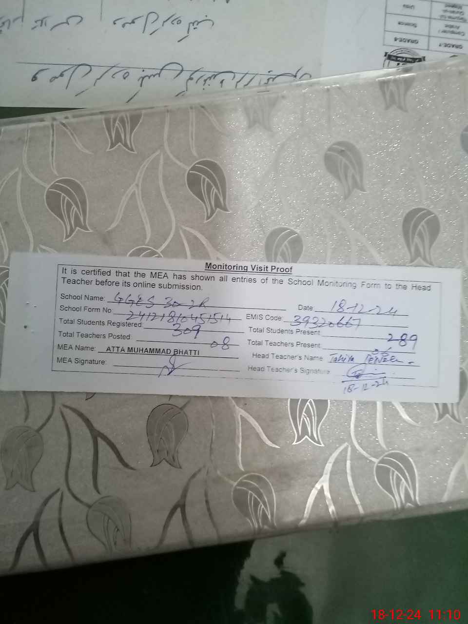 | EMIS Code: 39320667 | Name of School: GGES CHAK NO.30/2-RA | |||