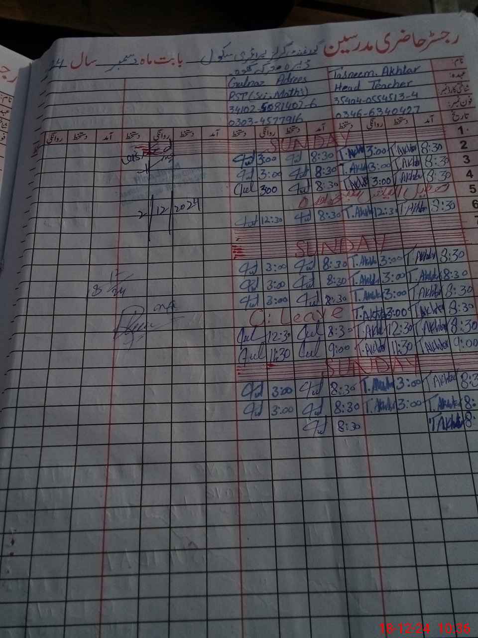 | Name: TA**** AK**** Designation: (School Headmaster's/Headmistress's) PST Phone/Cell Number: 03**** |