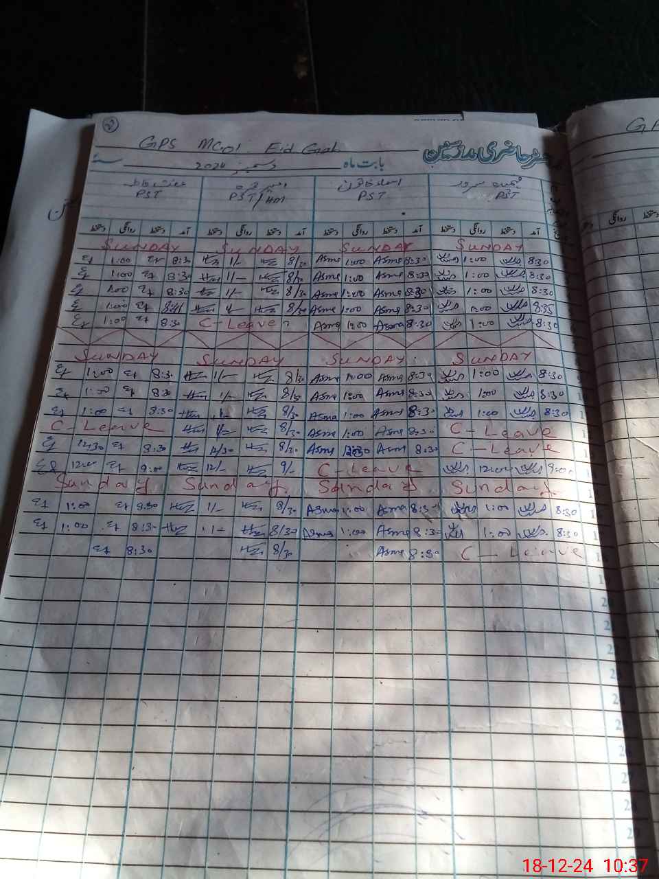 | Leave | Duty | Absent | Maternity | Medical | Ex- Pak |