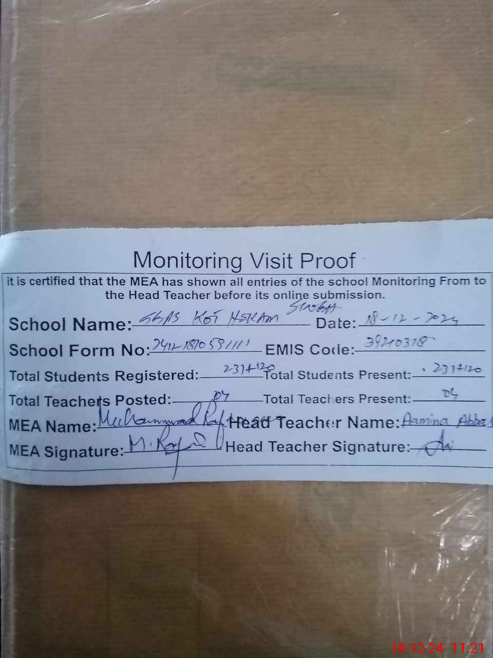 | EMIS Code: 39210318 | Name of School: GGPS KOT HUKAM SINGH | |||