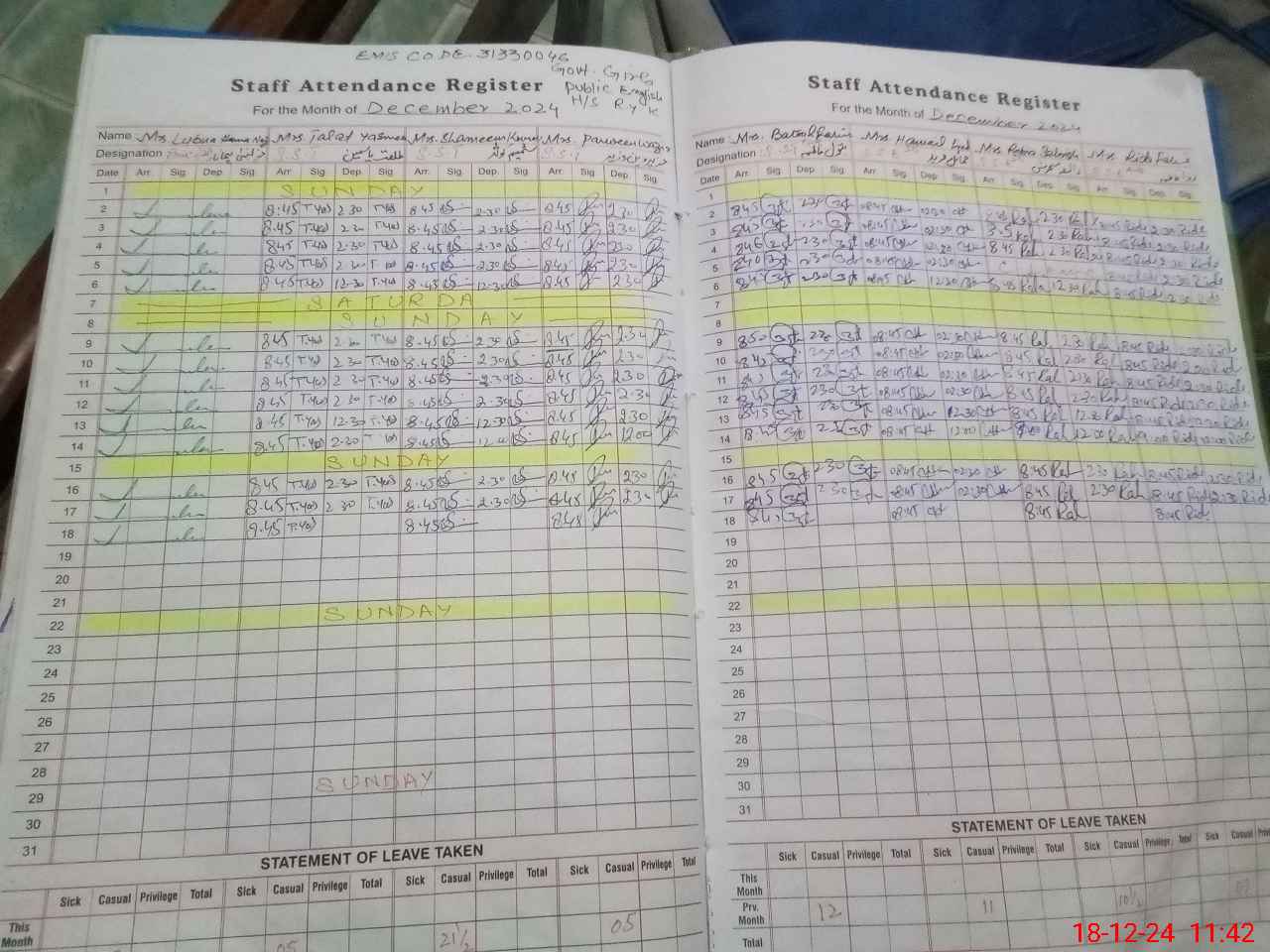 | 31**** | Ma**** Iq**** | EST | Regular | 0 | 0 | 0 | 0 | 0 | 0 | 0 | 0 | 0 | Maternity |