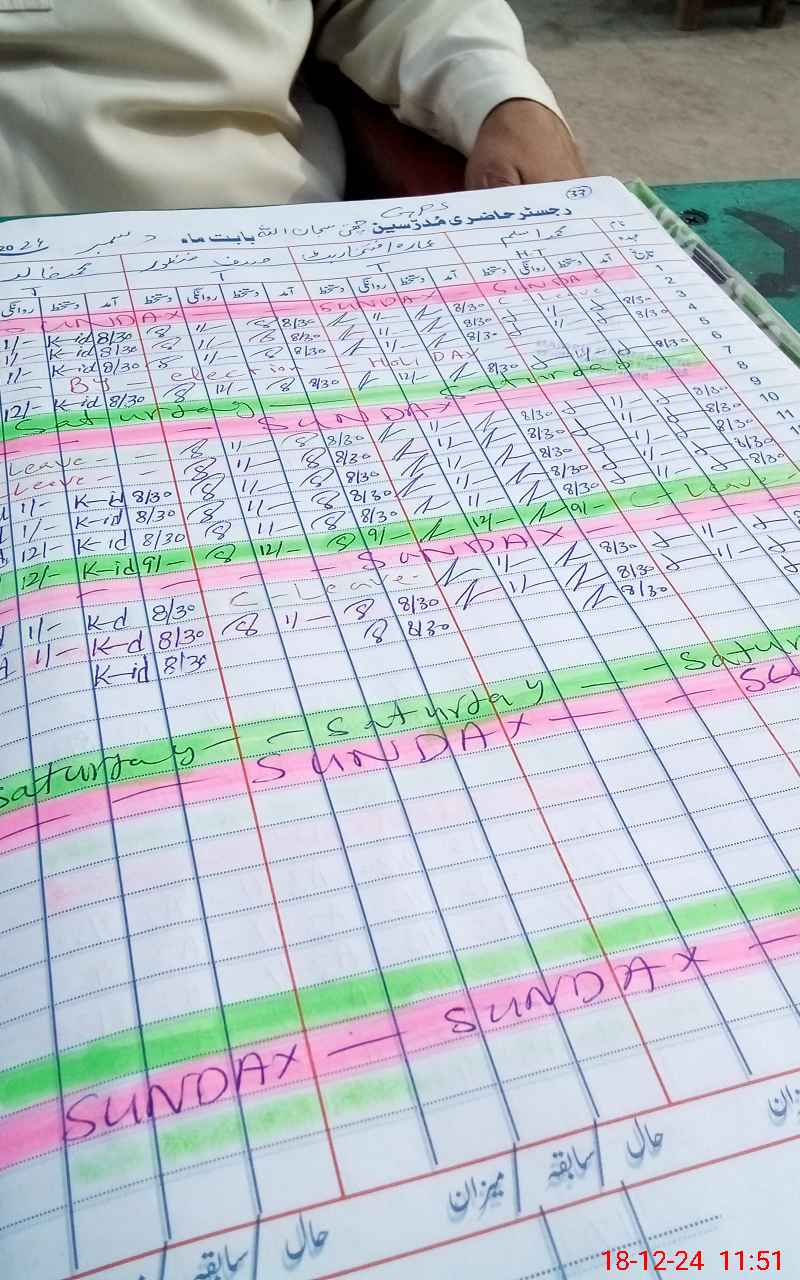 | CNIC | Full Name | Designation | R/C | Absence During Last Calender Month |