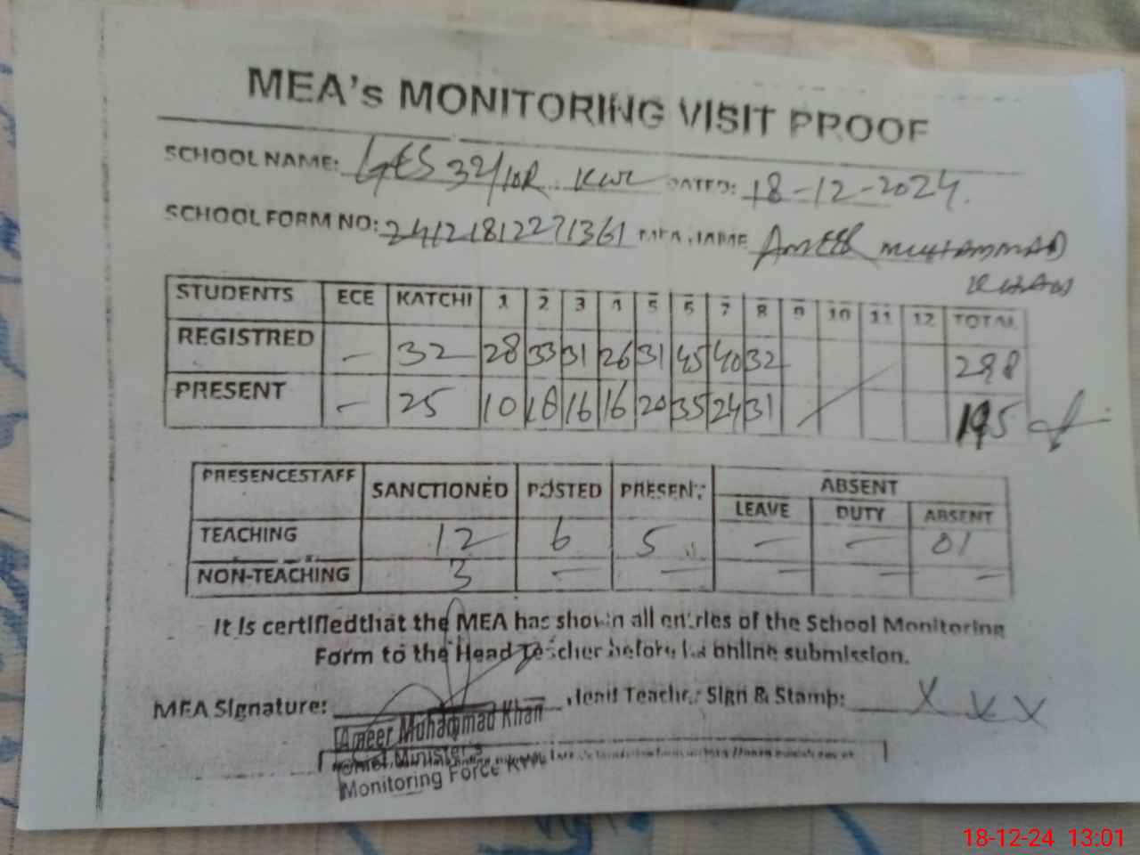 | EMIS Code: 36420077 | Name of School: GES 32/10-R, KACHA KHUH | |||