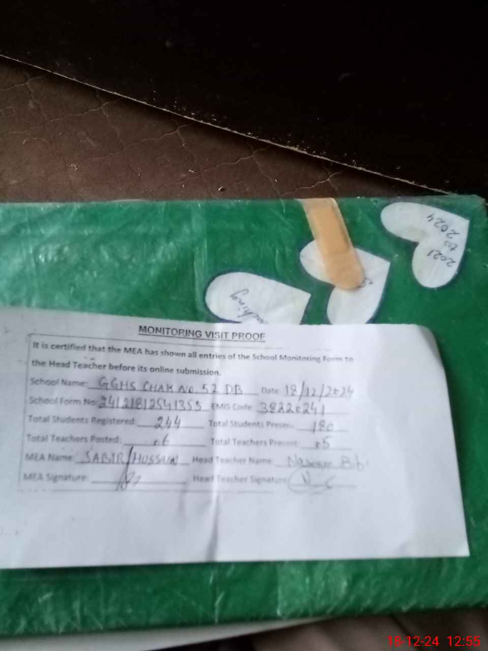 | EMIS Code: 38220241 | Name of School: GGHS CHAK NO. 52 DB NOORPUR | |||