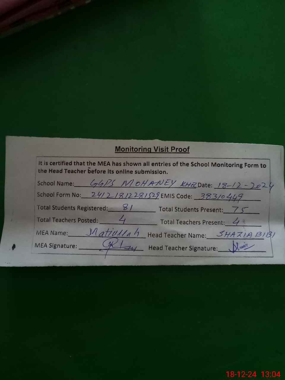 | EMIS Code: 38310449 | Name of School: GGPS MOHANEY KHEL | |||