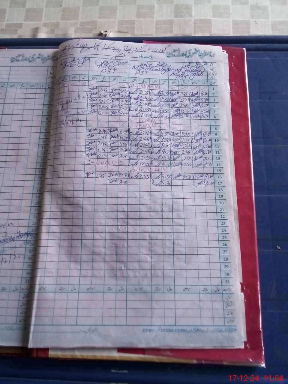 | CNIC | Full Name | Designation | R/C | Absence During Last Calender Month |