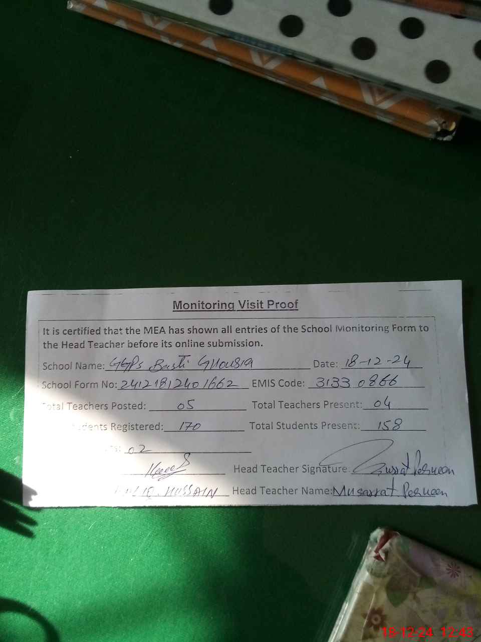| EMIS Code: 31330866 | Name of School: GGPS BASTI GHOUSIA | |||