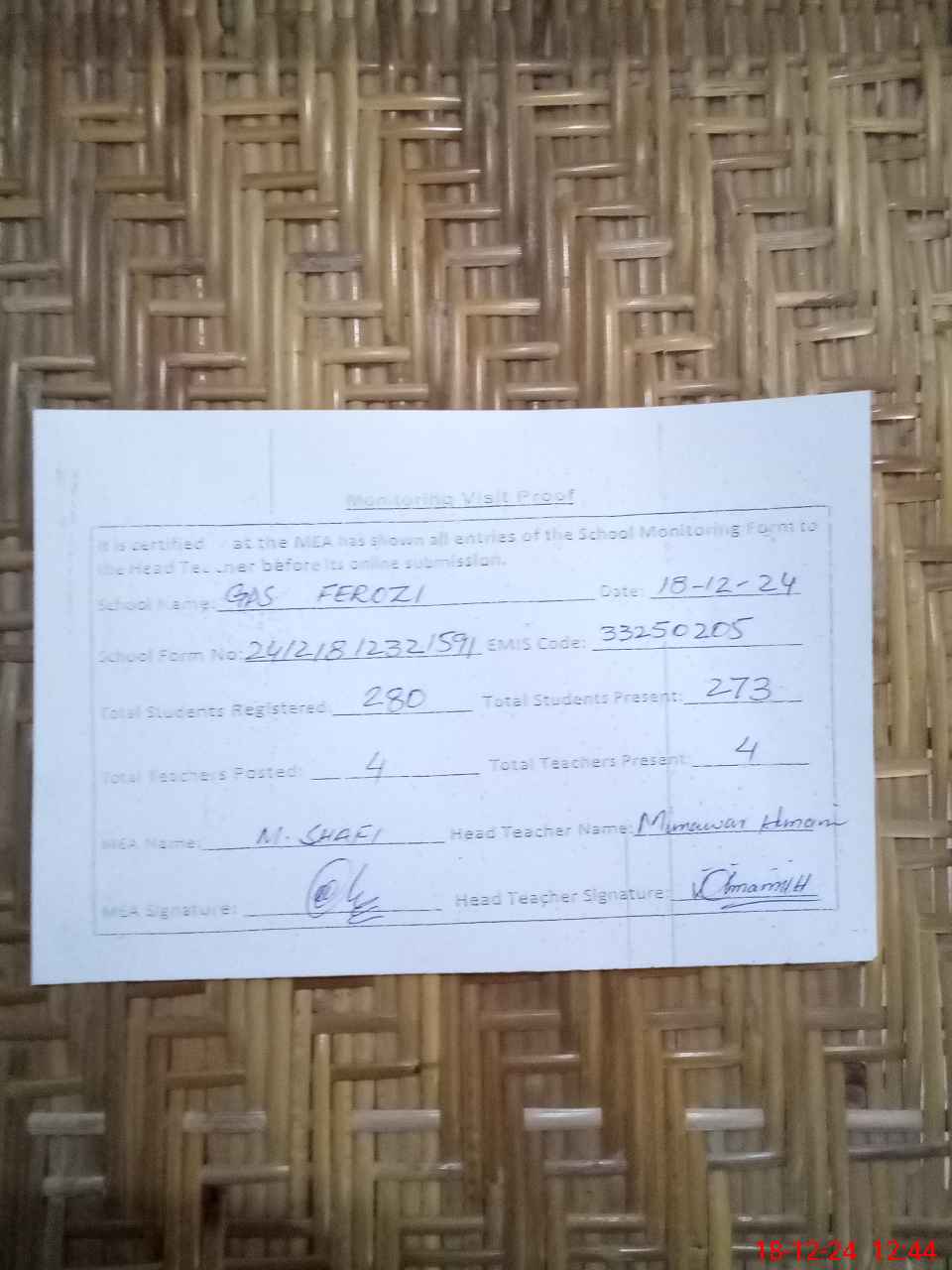 | EMIS Code: 33250205 | Name of School: GPS FEROZI | |||