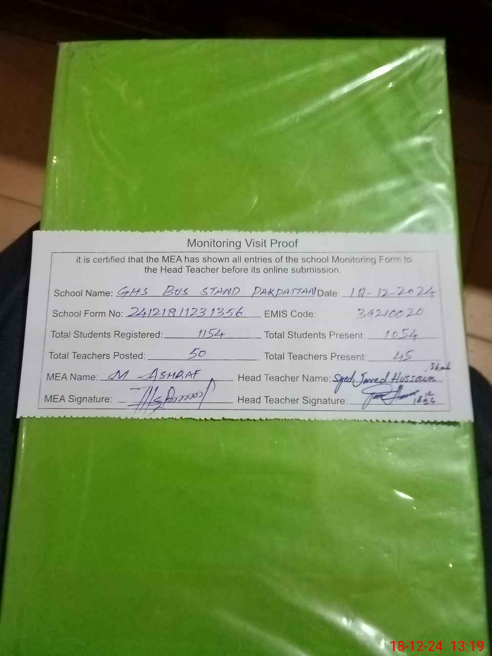 | EMIS Code: 39210020 | Name of School: GHSS BUS STAND PAKPATTAN | |||
