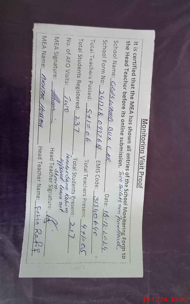 | EMIS Code: 31340640 | Name of School: GGPS WIHID BUX LAR | |||