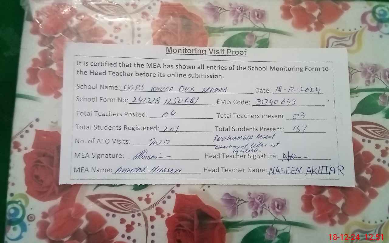 | EMIS Code: 31340643 | Name of School: GGPS KHUDA BUX MEHAR NO .2 | |||