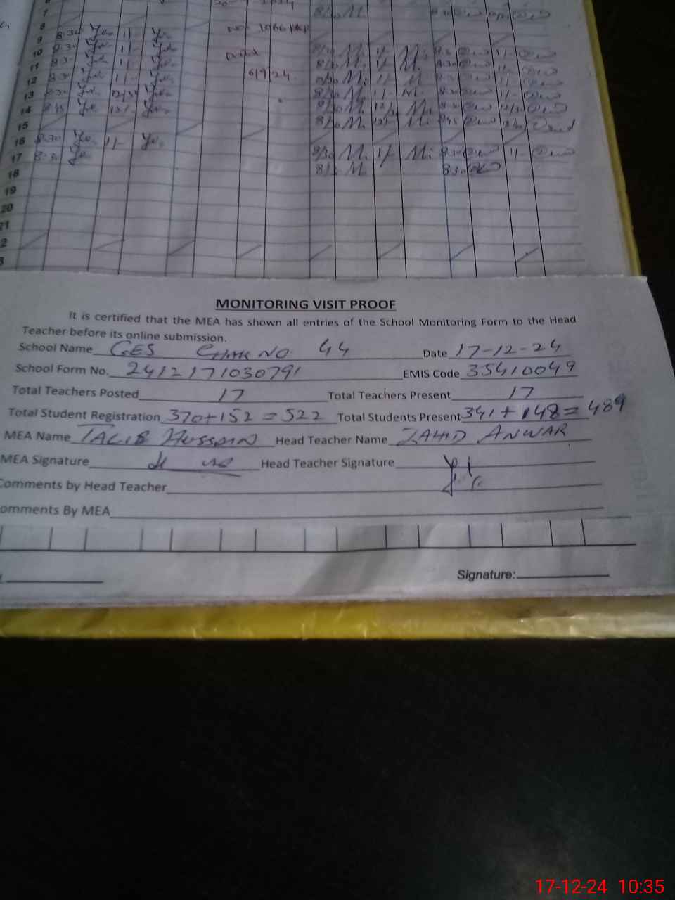 | EMIS Code: 35410049 | Name of School: GES CHAK NO 44 FEROZWALA | |||