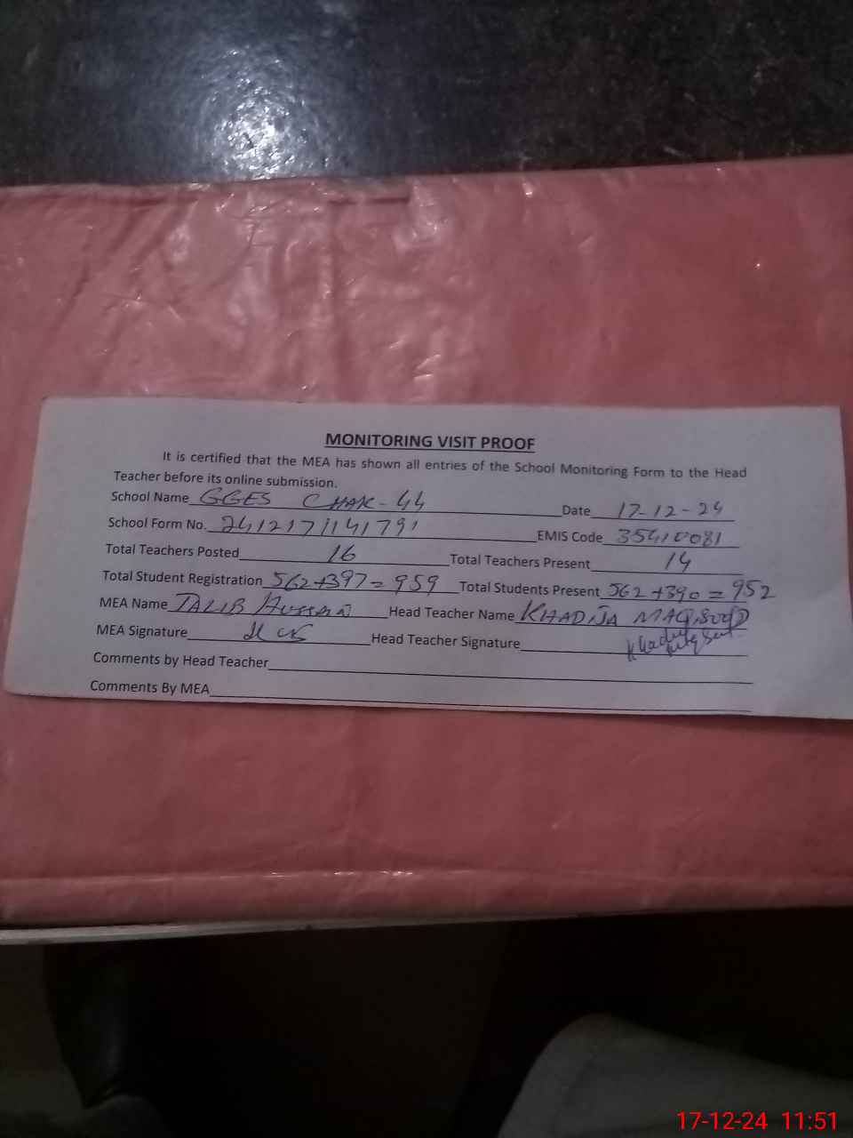 | EMIS Code: 35410081 | Name of School: GGES CHAK NO.44 | |||