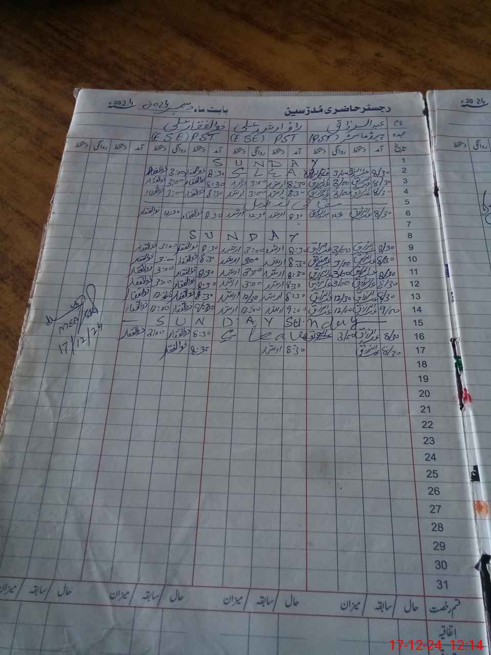 | CNIC | Full Name | Designation | R/C | Absence During Last Calender Month |