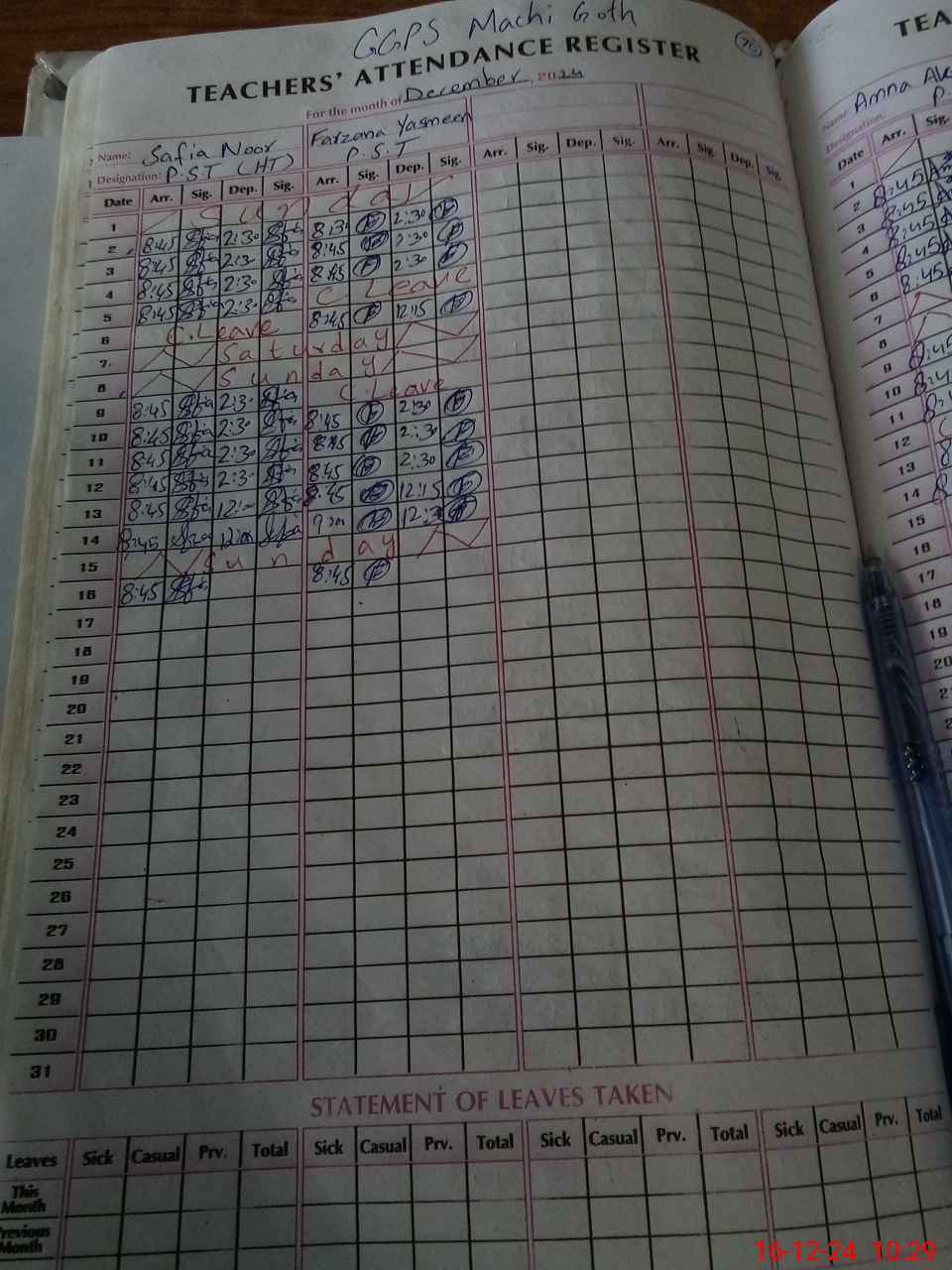 | Leave | Duty | Absent | Maternity | Medical | Ex- Pak |