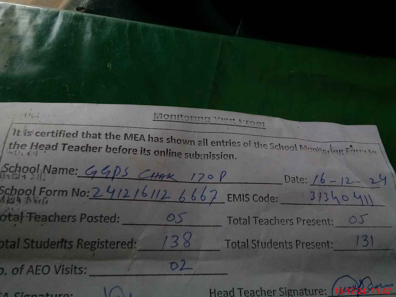 | EMIS Code: 31340411 | Name of School: GGPS CHAK 170/P | |||