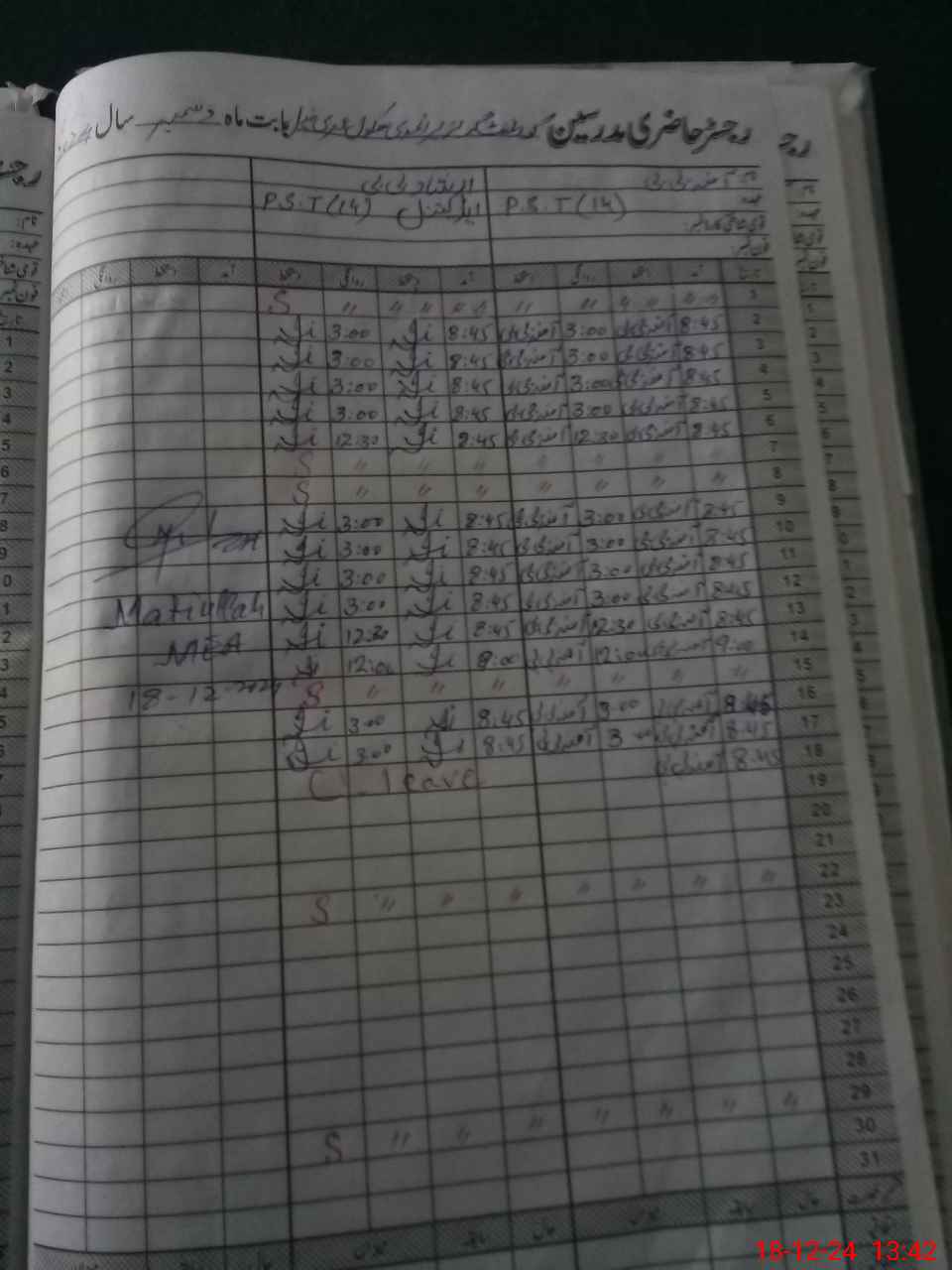 | CNIC | Full Name | Designation | R/C | Absence During Last Calender Month |