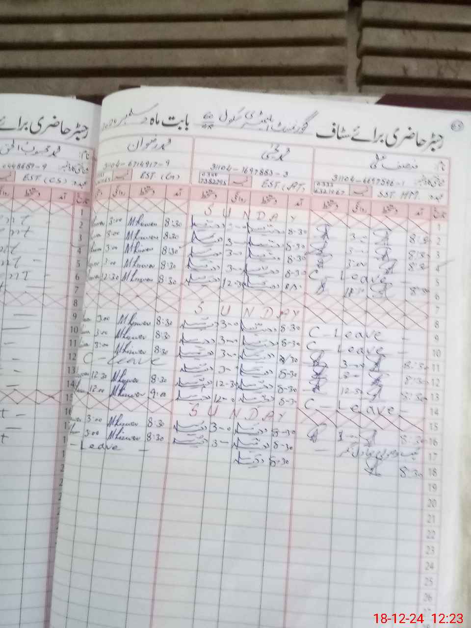 | Name: MU**** AL**** Designation: (School Headmaster's/Headmistress's) S.S.T.(Science) Phone/Cell Number: 03**** |
