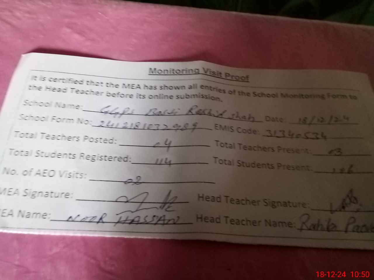| EMIS Code: 31340534 | Name of School: GGPS BASTI RASHID SHAH | |||