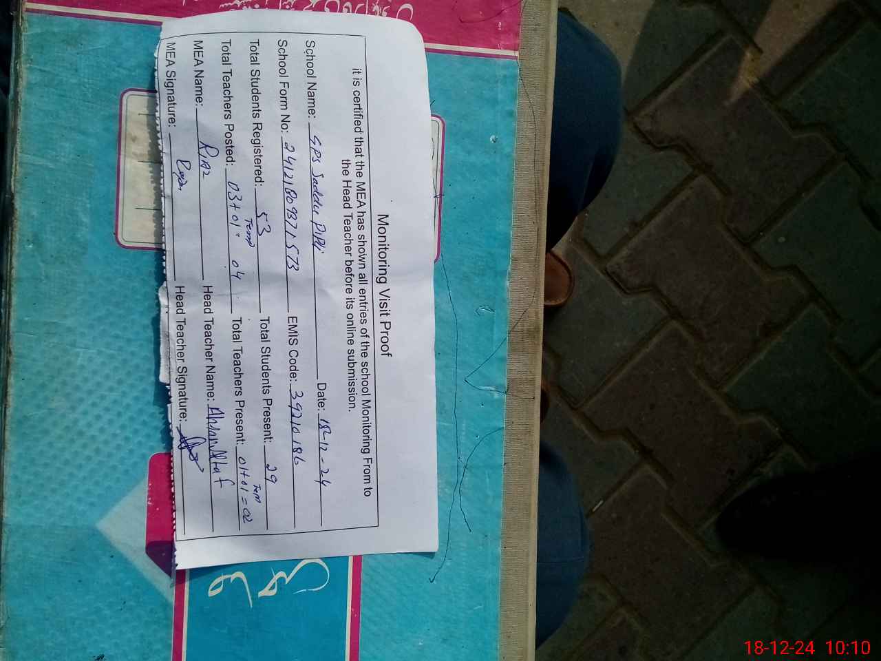 | EMIS Code: 39210186 | Name of School: GPS SADDU PIPLI PO PAKPATTAN | |||