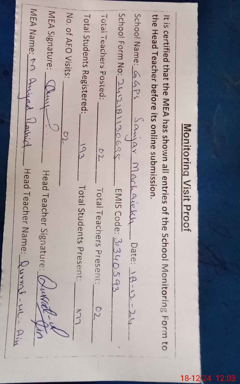 | EMIS Code: 31340593 | Name of School: GGPS SANJAR MASHAIEKH | |||