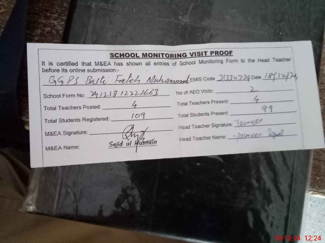 | EMIS Code: 31330774 | Name of School: GGPS BASTI FATEH MUHAMMAD | |||
