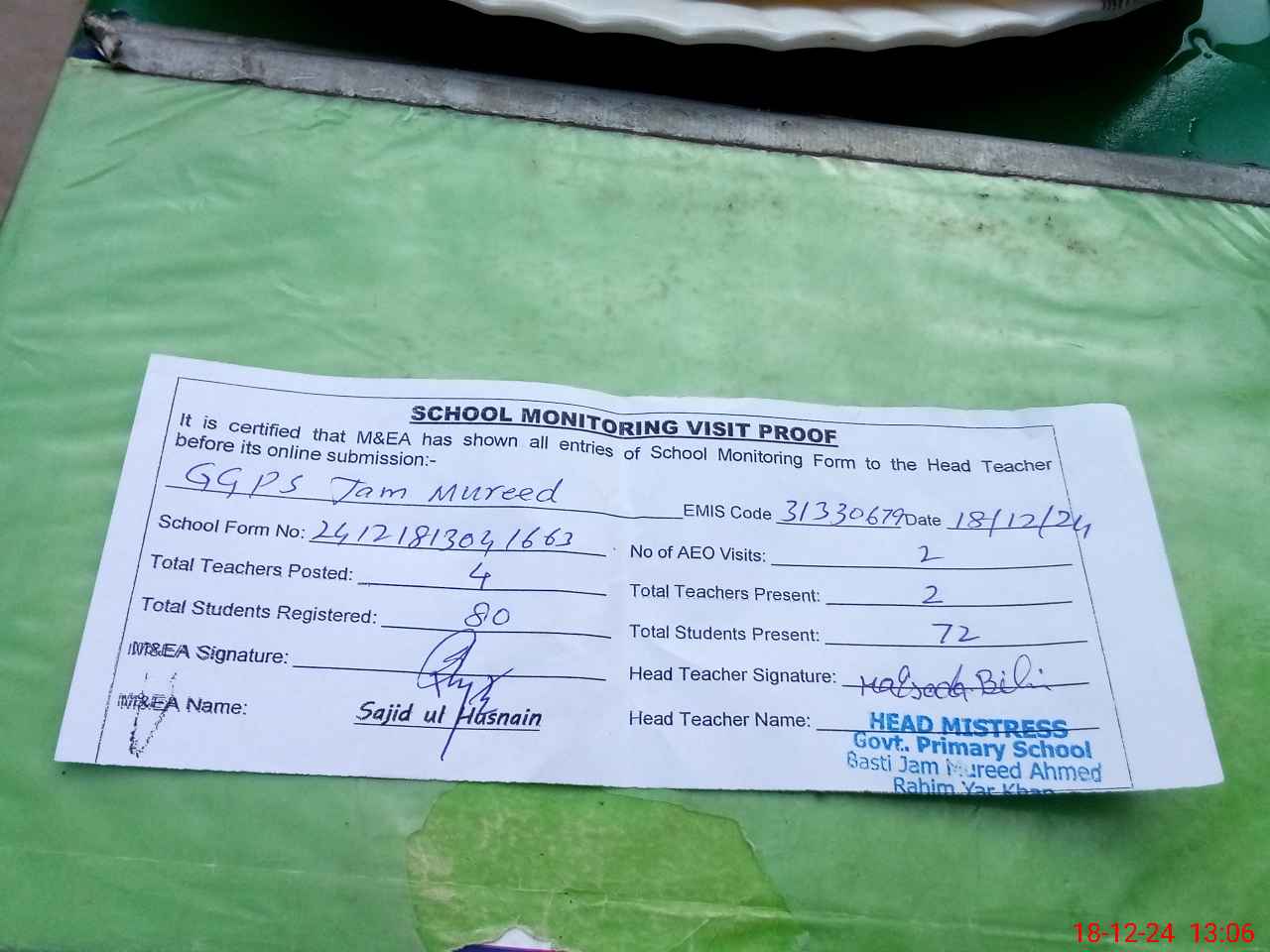 | EMIS Code: 31330679 | Name of School: GGPS BASTI JAM MUREED AHMED | |||