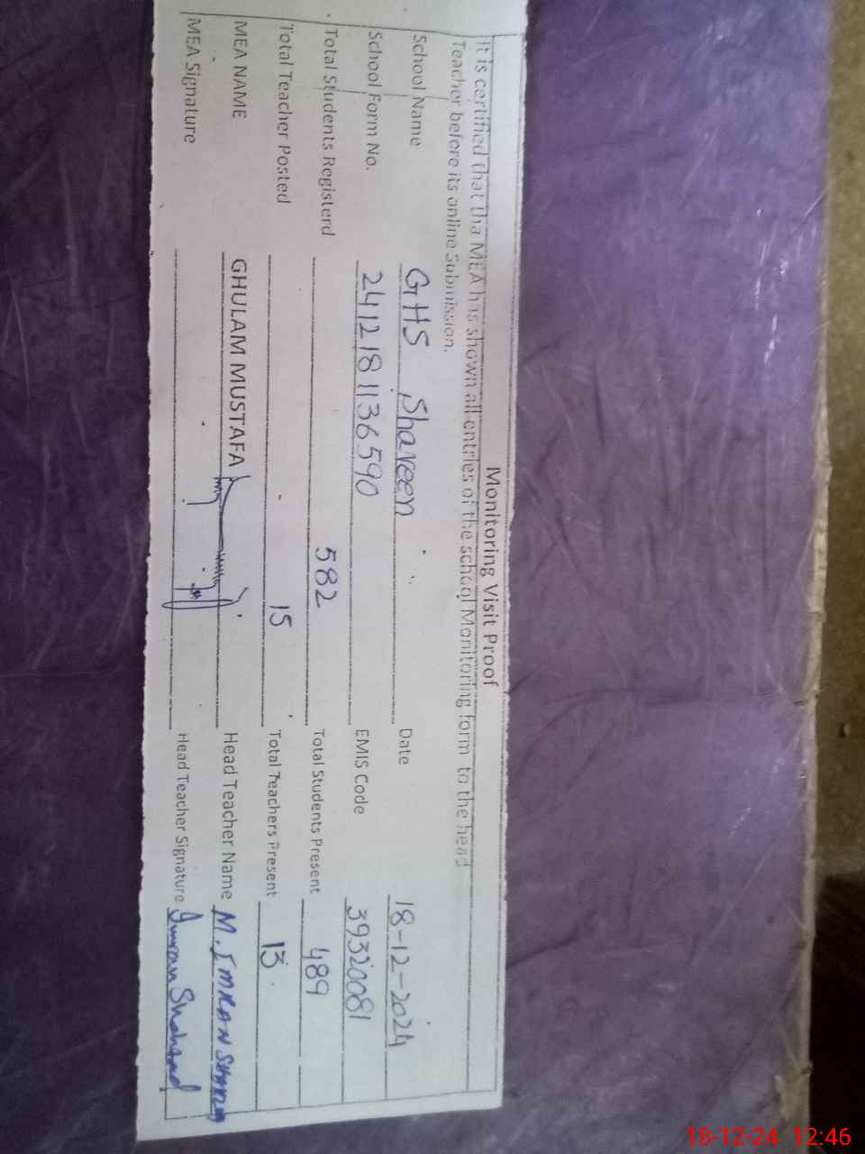 | EMIS Code: 39320081 | Name of School: GHS SHAREEN | |||