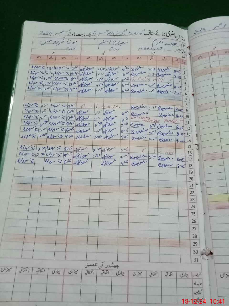 | Leave | Duty | Absent | Maternity | Medical | Ex- Pak |