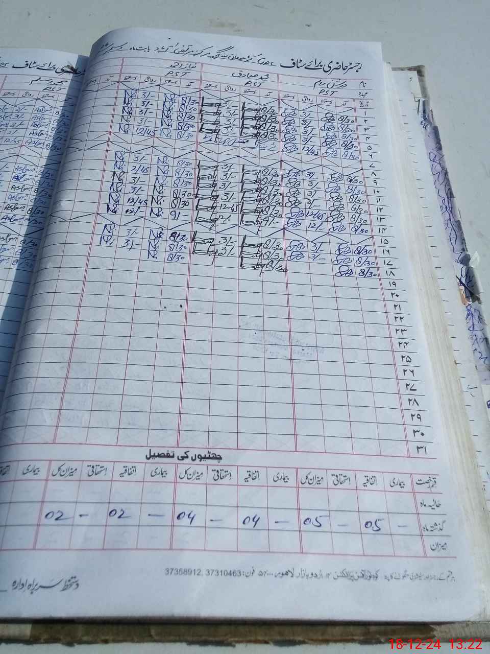 | CNIC | Full Name | Designation | R/C | Absence During Last Calender Month |