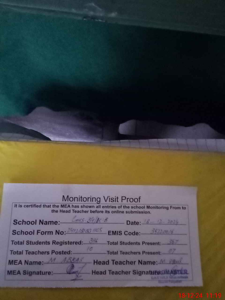 | EMIS Code: 39220016 | Name of School: GHS CHAK NO.34/KB | |||