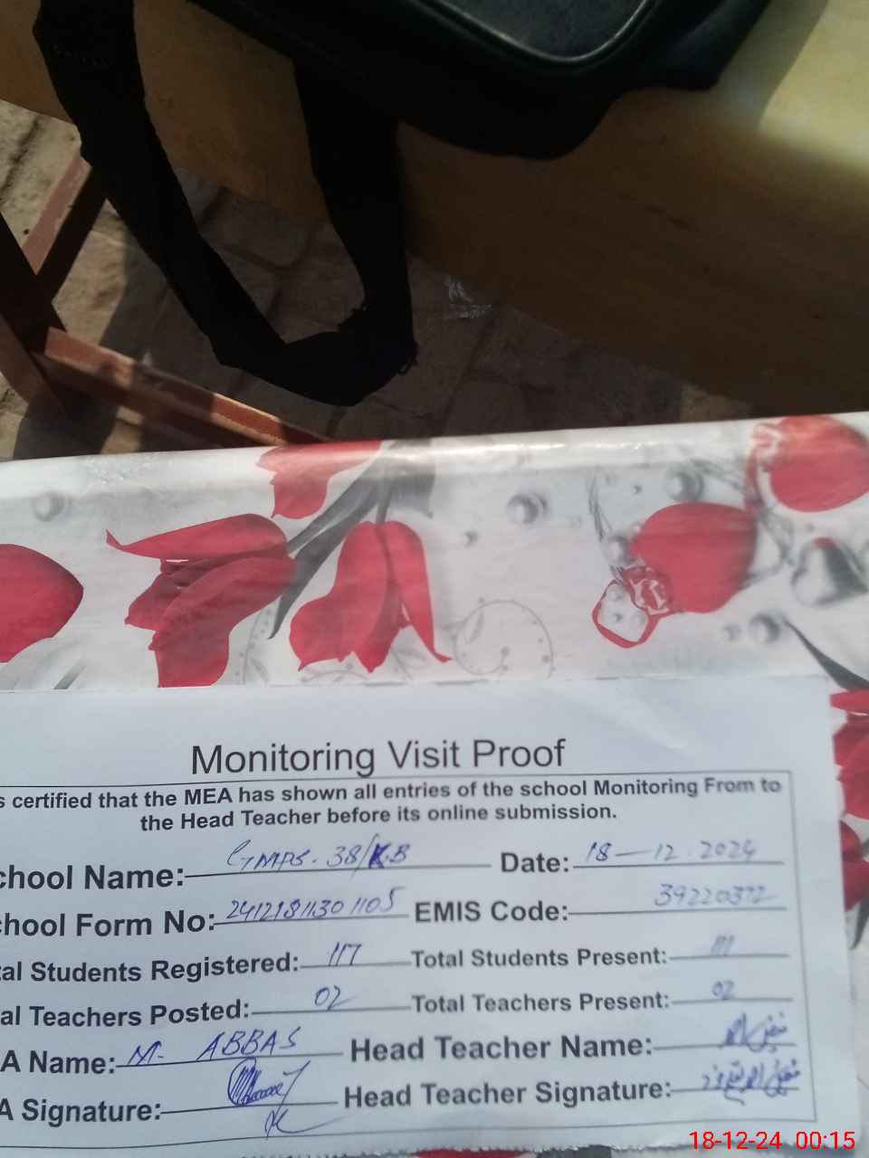 | EMIS Code: 39220372 | Name of School: GMPS CHAK NO 38 KB | |||