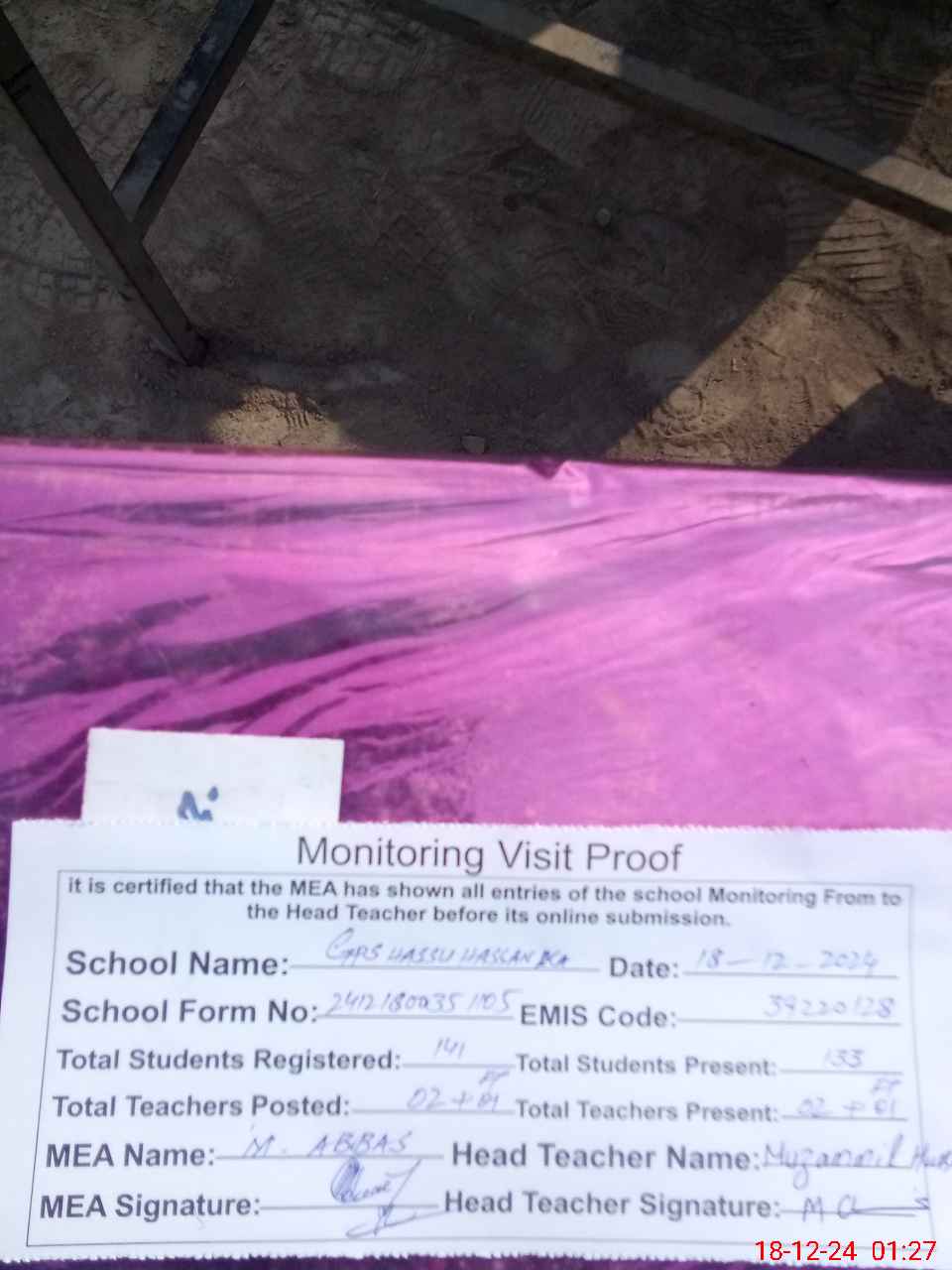 | EMIS Code: 39220128 | Name of School: GPS HASSU HASSAN KA | |||