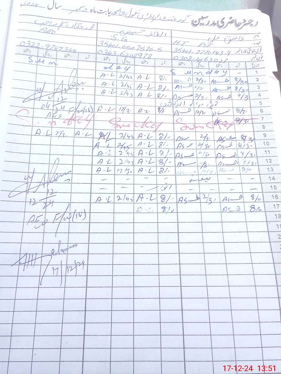 | Name: AS**** AL**** Designation: (School Headmaster's/Headmistress's) PST Phone/Cell Number: 03**** |