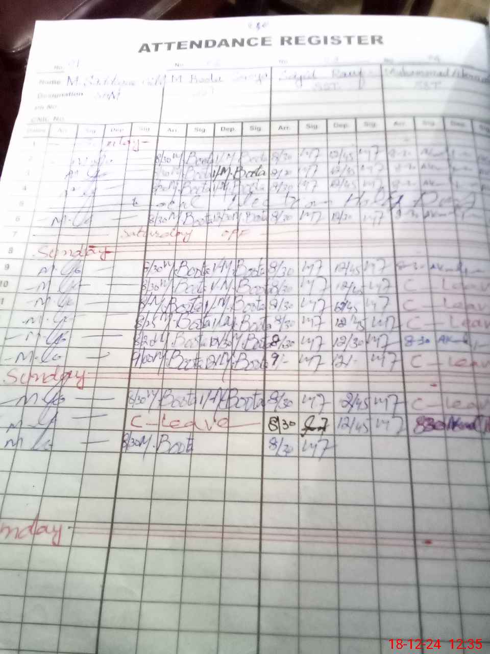 | CNIC | Full Name | Designation | R/C | Absence During Last Calender Month |